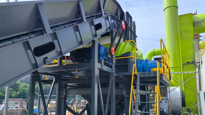 核心設(shè)備:鵝頸式輕型板喂機(jī)和中型板喂機(jī),全密封輸送帶,負(fù)壓臥式風(fēng)選機(jī)、階梯棒條篩、人工+智能化機(jī)器人聯(lián)合分揀平臺(tái)、雙軸撕裂機(jī)、除鐵器、除塵器等。